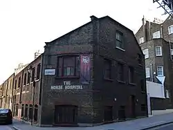 The building is Grade II listed.[1] It was originally built by James Burton in 1797 as stabling for cab drivers' sick horses, the Horse Hospital is notable for its unique stone tiled floor. Access to both floors is by concrete moulded ramps, the upper floor ramp retains hardwood slats preventing the horses from slipping. It can be found at Colonnade, Bloomsbury, London.
