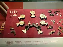 Of 104 animal bone depositions from 53 sites in continental Scandinavia and Iceland dating to the Merovingian period or Viking Age, 52% contained horse remains, however, the number containing pigs, cattle, and sheep or goats is very similar.[note 1] It was further noted both regional and temporal variations are seen, with the percentage of depositions including horse remains being higher in the Viking Age than in the Merovingian Period.[41] Horse depositions were found to be the most common animal in wetland sites and wells, potentially in cultural continuity with the Germanic Iron Age when the practice was common, while they are infrequent compared to other animals at cult-houses and open-air sites interpreted as hörgar. With almost all the deposited finds, the animal seems to have been subsequently cooked and eaten. Based on this, and written sources, it has been proposed that eating the sacrificed animal typically constituted an important part of the blót. It has been noted that it is difficult to distinguish ritual and ordinary consumption, although the existence of this distinction has also been questioned, given that meat would likely have only been eaten by most people at certain times of year and that potentially all meat was seen as sacred, providing sustenance and reflecting the holiness of the animals it came from.[42][43] Some examples do exist, however, in which parts of the horse are buried without being eaten, such as at the sacrificial wells in Trelleborg, in which the hind limb was deposited.[42] Horse bones dating to the Viking Age have been further found in Dublin showing signs of butchery and marrow extraction.[25]