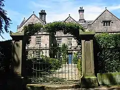 Horton Hall is a Jacobean manor house,[4] built on the site of an earlier house dating back to the 12th Century. It was in the ownership of the Edge family from the 1330s until 1710. It was damaged in the English Civil War, and rebuilt by Timothy Edge from 1653; his initials with the date occur on the lintel of the gateway in the garden.[5]