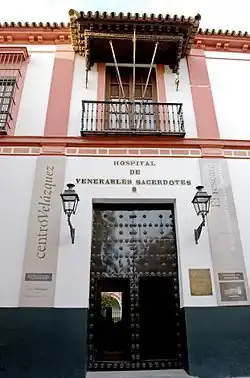 The Hospital de los Venerables (officially the Hospital de Venerables Sacerdotes, Hospital of Venerable Priests, popularly known as the Hospital of the Venerable) of Seville, Spain, is a baroque 17th-century building which served as a residence for priests. It currently houses the Velázquez Center, dedicated to the famous painter Diego Velázquez. It is located in the Plaza de los Venerables, in the center of the Barrio de Santa Cruz and close to the Murillo Gardens, the Seville Cathedral and Alcázar.