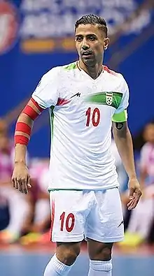 Hossein Tayyebi Bidgoli (Persian: حسین طیبی بیدگلی; born 29 September 1988) is an Iranian professional futsal player who plays for Palma and the Iran national futsal team.[2] His first match with Iran was in 2009 at the age of 20. He was ranked Top Goalscorer at the 2014 (15)[3] and 2018 AFC Futsal Championship (14),[4] and 5th Best Player in the World at the UMBRO Futsal Awards in 2017 and 2018.[5]