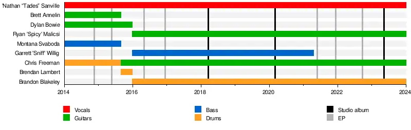 - Nathan "Tades" Sanville - lead vocals (2014–present)