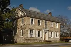 Built in 1783, his historic structure is a 2+12-story, limestone dwelling with red sandstone accents, and was designed in the Georgian style. A rear kitchen addition dates to the mid-nineteenth century. It has a high-pitched gable roof and features a small portico that is supported by Doric order columns and pilasters.[2]