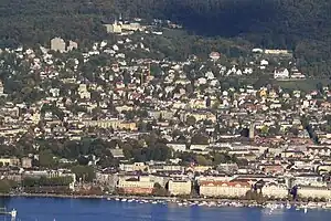 Grand Hotel Dolder and Hottingen as seen from Lake Zürich