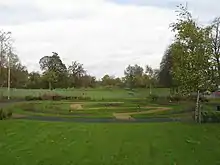It is flanked to the west by Househill Park, which features a play area and small rose garden with the Levern Water flowing through it, and was the location of Hous'hill, the local country house[3][4] (dating from the early 1800s and once home to team room entrepreneur Catherine Cranston)[5] until its demolition following a fire, shortly before the building of the housing estate[5] – the rest of the surrounding land in the area was open woodland or farmers' fields.[3] To the east is the Silverburn Centre (a large 'out of town' retail, dining and cinema complex)[6][7] and the Brock Burn;[8] the two waters converge a short distance to the north.