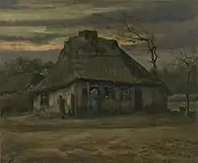 Vincent van Gogh spent the early 1881–1885 years of his brief ten-year career as an artist painting in the Netherlands at Etten, The Hague, Drenthe, and Nuenen (his last family home). It was in Nuenen that Vincent executed F82, The Potato Eaters, which he considered his first really successful painting, while other early paintings of the time, such as F83, The Cottage (left), attest to his sympathy for peasants and their way of life.[1]
