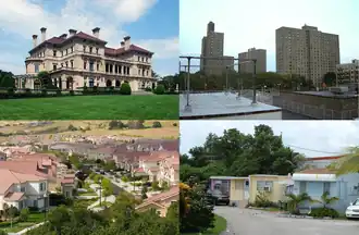 Housing in the United States is heavily commodified, and when viewed as an economic sector, contributes to 15% of the gross domestic product.[2] As in countries such as Canada or the United Kingdom, the United States is experiencing a crisis in housing affordability, with cost increases in housing vastly outstripping wage growth. From 2000 to 2021, the median rent more than doubled.[3] The amount of public housing is capped via the Faircloth Limit, and when available can only be offered to households meeting certain eligibility requirements.