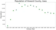 - ↑ "Howard County, Iowa - History". Howard County, Iowa. Retrieved March 6, 2014.