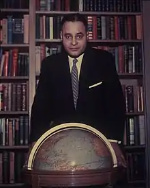 Ralph Bunche, an American political scientist and diplomat, received his MA in political science in 1928 and PhD in 1934 from Harvard University.[22] He was appointed an instructor in political science at Howard University, and rose to become professor and chair of the department. From 1936 to 1938, Bunche studied anthropology and conducted postdoctoral research at Northwestern University and the London School of Economics (LSE).[23] During this time, Bunche developed an expertise on the impact of colonialism on colonial subjects.[24] His book, A Worldview of Race, argues that race plays a role in modern economic, political, and social conditions.[25] When the US entered World War II, Bunche took a leave of absence from Howard University in 1941 and did not return to formal teaching. He worked as Senior Social Science Analyst for Africa in the Office of Strategic Services (OSS), then at the U.S. State Department, and finally, at the United Nations.[22] In this way, Ralph Bunche was both a practitioner of international relations and a scholar.[26] Turning theory to practice, he expanded the reach of the Howard School of International Relations academic thought by attempting to displace racial hierarchy in domestic and international institutions.[27][28]