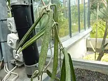 Hoya shepherdii is a species of flowering plant in the genus Hoya native to the eastern Himalayas and Assam.[1] It is known for its long, slender foliage that superficially resembles a green bean,[2] somewhat similar to Hoya kentiana and Hoya wayetii.
