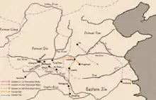 Jin launched a major campaign against Former Yan in 369. The Jin forces defeated Yan forces and reached Fangtou, causing panic in the Yan court. However, the Former Yan general Murong Chui led 50,000 troops and stopped the Jin advance at the Yellow River. Meanwhile, Xianbei cavalry cut off the Jin supply lines and forced them to retreat. During the retreat, Murong Chui led an army to pursue the Jin forces and over 30,000 Jin soldiers were killed in the resulting battle.[3]