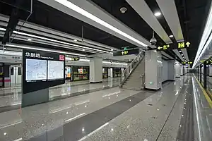 Huapeng Road (simplified Chinese: 华鹏路; traditional Chinese: 華鵬路; pinyin: Huápéng Lù) is a station on Line 13 of the Shanghai Metro,[1] part of phase two of the line. Located at Chengshan Road and Huapeng Road in the city's Pudong New Area, the station opened with the rest of phases two and three of Line 13 on 30 December 2018.[2] During the planning stages, the station was known as Liuli (Chinese: 六里).[3]