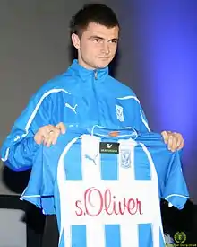 In February 2015, he joined the Romanian Astra Giurgiu,[3] from where he left after playing one league match.[4] On 15 June 2015, he signed a two-year contract with Cracovia.[5] He made his debut on July 17 in a 1–0 against Lechia Gdańsk. In the colors of the Stripes he played 64 matches. In 2017, he moved to Chojniczanka Chojnice playing in the first league.[6] For three seasons, he played 67 matches for this club and scored 7 goals. In the winter of 2020, he signed a six-month contract with Widzew Łódź.[7] On March 1, 2020, he made his debut in a 2–2 draw in the second league against Olimpia Elbląg.[8] On 19 July 2020 in the league match with Resovia, due to the limit of substitutions of the Łódź team and Wojciech Pawłowski's red card, he took his place in the goal. It was the first situation since 2001 when a field player replaced the goalkeeper in the Widzew Łódź team.[9]