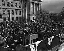 He was first elected to the governorship in November 1935, and his term started in January 1936.[1] He established the Balance Agriculture With Industry (BAWI) program that sought to develop an industrial base that matched the state's agricultural base. Under BAWI, advertising and incentives were deployed in hopes of enticing industries to locate to the state.[4] Local governments could issue bonds to construct factories that could be leased to companies (which were also offered tax breaks).[4] He also increased the number of paved roads in the state.[4]