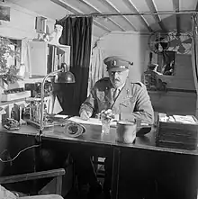 On 15 April 1945, while attached to the 11th Armoured Division, Hughes became the first Allied Medical Officer to enter the concentration camp at Bergen-Belsen. Hughes took control of the camp and the 4,600 German and Hungarian soldiers placed at his command by the German authorities.[9] Hughes' two main issues were the control of disease, after an outbreak of typhus, and the distribution of food. To aid with the general health of the camp victims, Hughes took control of the local hospital, removing the German patients to treat his new charges. The hospital was later renamed the Glyn Hughes Hospital in his honour.[10] The distribution of rations was a far greater problem, and with only 120 British troops, the German soldiers were ordered to assist in the control of food in the camp. On the first night of the liberation a riot broke out among the inmates over limited rations and the German guards reacted by shooting and killing several of them. To ensure this situation did not repeat itself, Hughes threatened to execute a German soldier for every inmate killed. In September 1945, Hughes was one of the main witnesses for the prosecution in the Belsen Trial.[11] For his actions at Belsen, Hughes was awarded the Order of St. John of Jerusalem and the United States Legion of Merit.[4] He also received a second Bar to his DSO, for actions during the attempted relief of Arnhem from the south, earlier in the campaign, where as the most senior surviving officer, he took command of the tanks.[3] In 1945 he was appointed a Commander of the Order of the British Empire.[4]