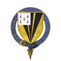 His armorials were described as follows by George Wrottesley, in his History of the family of Wrottesley of Wrottesley, co. Stafford:[1] "The Radcliffes of Ordsall, co. Lancaster, held Moberley and Sandbach, under the Ardernes of Aldford, and Sir Hugh Wrottesley, after his marriage with Isabella, appears to have assumed the Arms of Radcliffe with a change of tincture, for these Arms, viz , " Or, a bend engrailed Gules," have been ascribed to him by Ashmole, in his "History of the Garter", on the authority of an Armorial in the College of Arms".