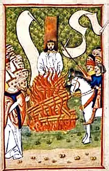 1317 also saw the pope issue a papal bull expanding inquisitors' rights when investigating witchcraft and sorcery, followed by another in August 1326 entitled Super illius specula which made sorcery practically equivalent to heresy.[2] This campaign against sorcery was continued by John's successors from pope Benedict XII to Antipope Alexander V. At the pope's request Pierre des Prés also presided over the trials of Géraud's accomplices, most notably those of Pierre de Saleilles in September 1322 and of Bernard Gasc (a bishop in partibus who had blessed the wax figurines) on 26 November 1322[3]