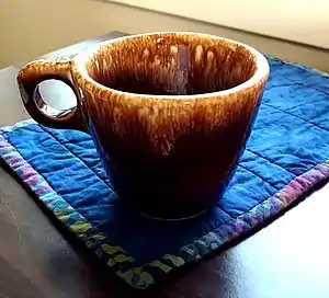 On June 19, 1950, the plant was destroyed in a flood and resulting fire. Primarily because of Hull's excellent reputation with its customers and buyers, the company was able to quickly rebuild and re-opened on January 1, 1952, as "The Hull Pottery Company." J.B. Hull became General Manager.[2] John Hull, A.E.'s nephew who had continued to operate the Star Stoneware and was President of the Crooksville Bank, became a member of the board of directors. John's daughter Ann remained a closely associated investor through the 1970s, guided by her attorney husband Robert Jones (Ohio lawyer). Through the 1950s and 1960s the company continued to expand and diversify its product lines to keep up with the times. New artistic lines such as Continental, Ebb Tide, Parchment and Pine, Tokay, and Tropicana were introduced.[1] In the late 1960s through the mid-1980s, the company changed its production from artistic lines to predominately "House 'n' Garden" serving ware and Imperial florist ware.[2] J.B. Hull died in 1978.[1] Hull was succeeded as president by Henry Sulens and later Larry Taylor. In the mid-1980s the company was hit with multiple union strikes and foreign competition. In March, 1986 the company ceased operations and closed the plant.[2]