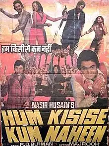 Hum Kisise Kum Naheen (transl. We Are Not Less than Anyone) is a 1977 Indian masala film produced and directed by Nasir Hussain. It took the third top spot at the box office in 1977.[1][2] The film stars Rishi Kapoor, Tariq Khan, Kaajal Kiran, Amjad Khan and Zeenat Aman in a special appearance. Mohammed Rafi received his only National Film Award for this film.