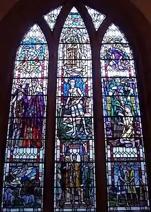 In 1950 the original plain-glass east window was replaced with a design by Douglas Strachan, illustrating scenes from the life of King David. Strachan is notable for designing the glass for the Scottish National War Memorial in Edinburgh Castle.
