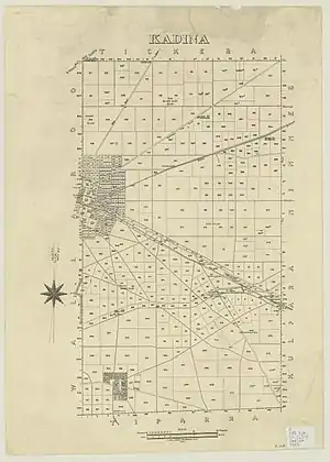 1. 1 2 3 4 5 6 7 8 "Search result for "Hundred of Kadina, HD" with the following layers selected - "Counties", "Government Towns", "Hundreds", "Local Government Areas", "SA Government Regions" and "Gazetteer"". Location SA Map Viewer. Government of South Australia. Retrieved 7 February 2019. Derivation of Name: From Abna caddy-yeena; Other Details: Area 124 square miles. Aborigninal word "caddy-yeena' means lizard plain. The name was applied to a plain 4 miles south of the town. Anglicised version of the Narungga name Gardina for a camp in this area.