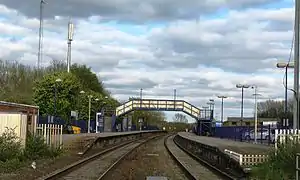 The Great Western Railway opened the station in 1847 as a temporary terminus of the Berks and Hants Line which started at Reading. In 1862 the Berks and Hants was extended to Patney and Chirton. It eventually reached Taunton on 2 April 1906 to allow the running of express trains from London Paddington through to the south west without taking the longer route through Bristol.[2] The station ceased to deal with goods traffic in 1970, and became an unstaffed halt with subsequent demolition of the station buildings (except the 1902 footbridge over the lines) in 1971. The footbridge was replaced by the current modern structure in 1999. A freight train crashed on 10 November 1971 partially demolishing the GWR signal box, which was then replaced by a modern wooden flat roofed signal box which served until the end of semaphore signalling and the introduction of colour light signals on 17 July 1978.[3]