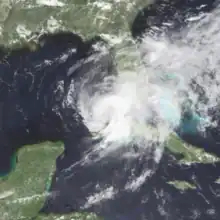 Hurricane Alberto was a Category 1 hurricane that caused the worst flooding in western Cuba in 32 years. The first tropical storm and hurricane of the 1982 Atlantic hurricane season, Alberto developed from a tropical disturbance on June 2 in the southern Gulf of Mexico. It rapidly organized and attained hurricane status the following day, the earliest date for a hurricane in the Atlantic Ocean since Hurricane Alma in May 1970.[1] Shortly after reaching peak winds off 85 mph (137 km/h), Alberto rapidly weakened due to approaching upper-level winds. Initial forecasts predicted the hurricane would continue northeastward into Florida; it turned sharply westward and drifted erratically for several days across the eastern Gulf of Mexico, before dissipating on June 6.