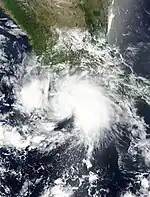 ![]() Dolores near peak intensity south of the Baja California peninsula. | |