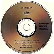 7. "Hurt" (US promotional CD single). Nine Inch Nails. Interscope Records. 1995. PRCD 6179.{{cite AV media notes}}: CS1 maint: others in cite AV media (notes) (link)