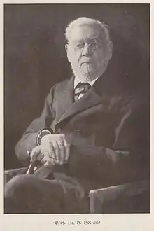 Born in Munich, Holland was a son of the lawyer Christoph Holland and his wife Karoline Seel. In 1846 he passed the Abitur at the Wilhelmsgymnasium München.[1] At the Universität of his hometown, Holland began to study Catholic theology, but later switched to law and medicine. He successfully completed his studies in art and literary history in 1853 at the University of Würzburg with a doctorate.