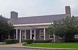 At that time the school consisted of its current central block, a single-story seven-bay rectangle in a randomly coursed ashlar pattern with a slate-shingled gable roof pierced by two brick chimneys. It stood in the middle of a 7-acre (2.8 ha) lot. Smaller wings project from all sides save the west, still the building's main entrance. It opens to a classic Colonial Revival center-hall plan, with much of the original finishes remaining.[1]