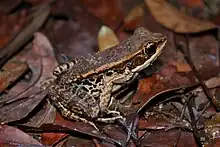 Hylarana latouchii, also known as Kuatun frog, La Touche's frog, or broad-folded frog, is a species of frog in the family Ranidae. It was formerly placed in genus Rana.[2] The specific name honours the collector of the type series: "Hylarana" latouchii was described by George Albert Boulenger based on three specimens collected by Irish ornithologist John D. La Touche in Guadun village in Wuyishan, Fujian, China.[3]