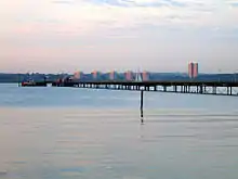 The name Hythe means landing-place or haven.[2] Hythe is recorded in a Parliamentary roll from 1293.[3] The Hythe ferry ("Hitheferye") to Southampton is marked on a map by Christopher Saxton of 1575, and on a map by John Harrison in 1788.[2] Hythe was part of the parish of Fawley, although it became a separate ecclesiastical parish in 1841.[4] The current church, of Saint John the Baptist, was erected in 1874.[4] It is of red brick with Bath Stone dressings.[4] The design was by John Oldrid Scott and replaced an earlier church dating from 1823.[5] There were at one time stocks in the village.[4]