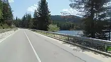 The road then passes through the village of Gelemenovo, forms a junction with the Trakia motorway at Km 90 of the motorway, and reaches the city of Pazardzhik,[2] the largest settlement along its route, where it intersects with the first class I-8 road. It passes through the western neighbourhoods of the city, crosses the river Maritsa, passes through the village of Glavinitsa and enters the western Rhodope Mountains, passing through Radilovo and Peshtera.[2] From Peshtera it enters the gorge of the river Stara reka until the town of Batak.[2] The road then reaches the Batak Reservoir and begins a long gradual ascend of the Batak Mountain, passing by the reservoirs of Beglika, Golyam Beglik and Shiroka Polyana via the Dospat Pass (1,600 m). It then passes through the Veliyshko–Videnishki ridge of the Rhodopes and descents to the valley of the river Dospat, follows the eastern shores of the Dospat Reservoir and reaches the town of Dospat.[2] The road continues for another 6 km south of the town until its terminus at the village of Barutin.[2]