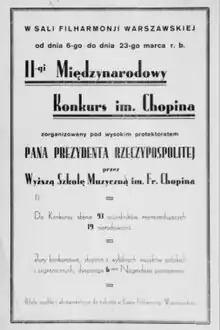 - 1 2 3 "II International Fryderyk Chopin Piano Competition". Fryderyk Chopin Institute. Retrieved 1 August 2021.