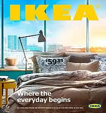 The IKEA Catalogue (US spelling: IKEA Catalog; Swedish: Ikea-katalogen) was a catalogue published annually by the Swedish home furnishing retailer IKEA. First published in Swedish in 1951,[1] the catalogue was considered to be the main marketing tool of the company and, as of 2004, consumed 70% of its annual marketing budget.[2] Approximately 208 million copies of the catalogue were printed in fiscal year 2013, more than double the number of Bibles expected to be printed in the same period.[3]
