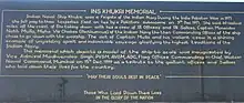 There is a memorial to the sailors in Diu. The memorial consists of a scale model of Khukri encased in a glass house, placed atop a hillock facing the sea. The memorial was inaugurated by Vice Admiral Madhvendra Singh as the flag officer commanding-in-chief.[4]