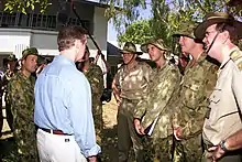 United States Secretary of Defense William Cohen (left) meets members of the Australian Army in Darwin on 29 September 1999.