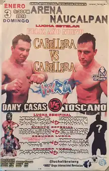 Up until the Arena Naucalpan 38th Anniversary Show on December 20, 2015 Danny Casas and Toscano had teamed up on several occasions without any signs of issues between the two. At the Arena Naucalpa Anniversary Show Casas, Toscano, Tortuga Rafy and Veneno lost to the team of Máscara Año 2000 Jr., Negro Navarro, Pirata Morgan and Trauma II. After the loss Toscano blamed Danny Casas for the loss, pushing him out of the way as he left the ring.[7] A week after the Anniversary show Toscano challenged Danny Casas to a singles match, which the veteran wrestler Toscano won by bending the rules. Following hs victory Toscano challenged Danny Casas to a Lucha de Apuestas, or "bet match", with both wrestlers putting their hair on the line.[8]