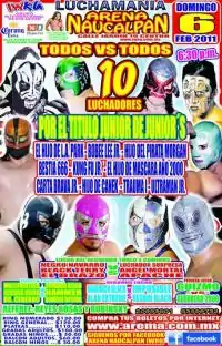 - 1 2 3 4 5 6 7 8 9 10 11 12 13 Ruiz Glez, Alex (February 6, 2011). "Arena Naucalpan (6 de febrero): 10 Gladiadores por el título "Junior de Junior's" – Lucha del recuerdo Toreo de 4 Caminos". Súper Luchas (in Spanish). Retrieved December 25, 2018.