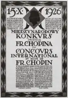 The competition was originally scheduled to start on 15 October 1926, the day of the unveiling of Wacław Szymanowski's Chopin Monument in the Łazienki Park, though it was delayed until 1927.[3]