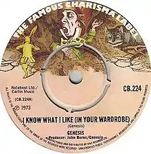 "I Know What I Like (In Your Wardrobe)" was the first charting single by the rock band Genesis. It was drawn from their 1973 album Selling England by the Pound. The single was released in the UK in February 1974,[1] and became a minor hit[2] in April 1974, when it reached number 21 in the UK Singles Chart.[3]