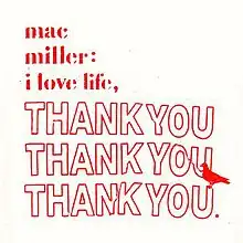 I Love Life, Thank You is the sixth mixtape by American recording artist Mac Miller. In 2011, Miller started the "Road 2 a Million Fans" series, during which he released a new song for every 100,000 Twitter followers he accumulated. On October 14, 2011, he released I Love Life, Thank You upon reaching one million followers. Seven of the thirteen tracks on the mixtape had previously been released throughout the course of the series.[2][1] On July 22, 2022, the mixtape was re-released to all streaming services.[3]
