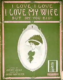 "Oh! You Kid!" was the title, or part of the title, of several popular songs published in 1908 and 1909. It became a widely used popular catchphrase. The most successful song using the phrase, "I Love, I Love, I Love My Wife – But Oh! You Kid!", was written by Harry Von Tilzer and lyricist Jimmy Lucas, and recorded by the duo of Ada Jones and Billy Murray.