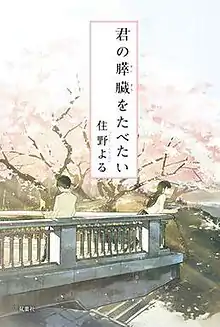 I Want to Eat Your Pancreas (Japanese: 君の膵臓をたべたい, Hepburn: Kimi no Suizō o Tabetai), also known as Let Me Eat Your Pancreas, is a novel by the Japanese writer Yoru Sumino. Initially serialized as a web novel in the user-generated site Shōsetsuka ni Narō in 2014, the book was published in print in 2015 by Futabasha. A manga adaptation ran from 2016 to 2017. A live-action film titled Let Me Eat Your Pancreas premiered in 2017, and an anime film adaptation on September 1, 2018.
