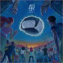 Before writing the song, AJR began writing a different song intended to be the lead single. The band got frustrated while stuck on writing, but "took that frustration and put it into a song", creating "I Won't".[4] Lead singer Jack Met described "I Won't" as "our own version of a punk 'F-you' song",[5] with member Ryan Met stating "the message is, 'Be yourself.' However, we know it's much easier said than done. We wanted to make a song that inspired others, but also ourselves to be who we are".[6] 25 minutes after the single released on July 29, AJR performed the song on The Tonight Show Starring Jimmy Fallon.[7] The band also signed with Mercury Records on May 18, 2022,[8] making "I Won't" the first song AJR has released through the label.[9]