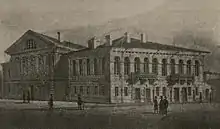 The National Theatre was founded on 15 May 1840, as the Great Theatre of Moldavia, when the Romanian language troupe, led by Costache Caragiali, was united with the French troupe, under a single direction of Vasile Alecsandri and the management of Costache Caragiali.[6] On 22 December 1846, a new audience hall was inaugurated in the former mansion of Prince Mihail Sturdza, on the Hill of Copou.[7]