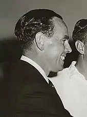 In 1942, aged 24, Johnson married 19-year-old Lal Park, the daughter of former Test cricketer Roy Park. They were married for 56 years and had two sons, Bill and Bob.[13] After the war, when cricket commitments allowed, Johnson worked as a salesman.[95] Immediately following his retirement, Johnson spent some time as one of the first television sporting commentators in Australia, covering the 1956 Summer Olympics, held in his home town of Melbourne.[96] He wrote a book; Cricket at the Crossroads, published in 1957.[1]