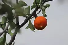 | The liana-like shoots wrapping around a branch with the orange fruit | |
