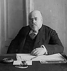 Ibrahim Hakki Pasha (Turkish: İbrahim Hakkı Paşa 1862–1918) was an Ottoman statesman, who served as Grand Vizier of the Ottoman Empire between 1910 and 1911.[1] He served as Ottoman ambassador to Germany and to the Kingdom of Italy.[2] Hakki Pasha also spent considerable amounts of time in London between February 1913 and the outbreak of World War I, working on negotiations concerning the Berlin-Baghdad Railway and a settlement for the Second Balkan War.[3] During that visit, Hakki Pasha met with King George V.[4] He was awarded the Order of Karađorđe's Star.[5]